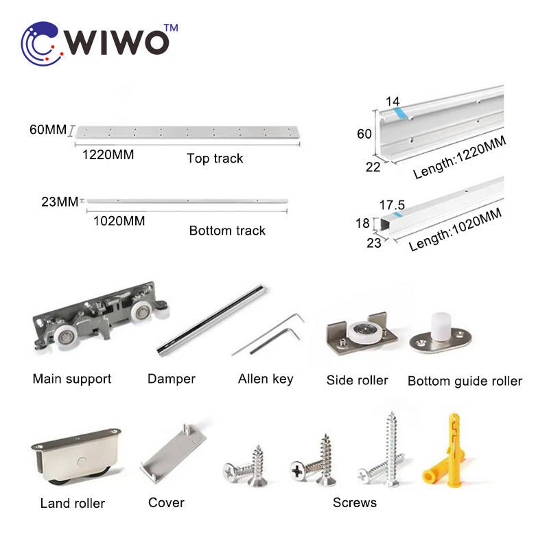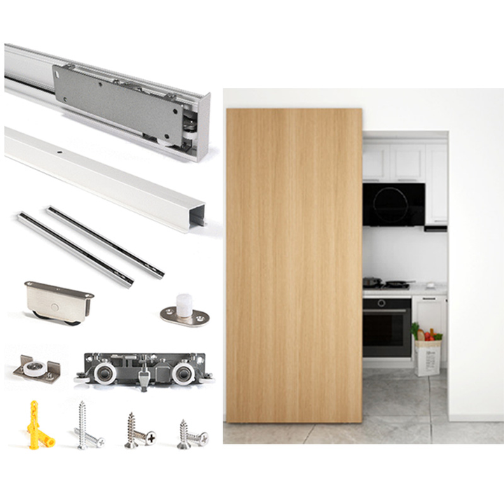 Ensemble de roulettes de porte coulissante en verre dissimulées, rail coulissant mural dissimulé pour porte coulissante à fermeture douce, quincaillerie pour porte coulissante
