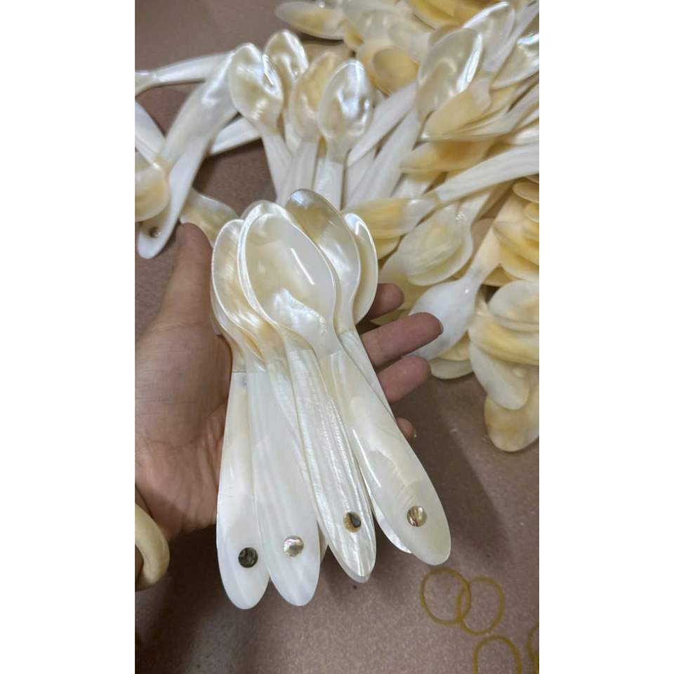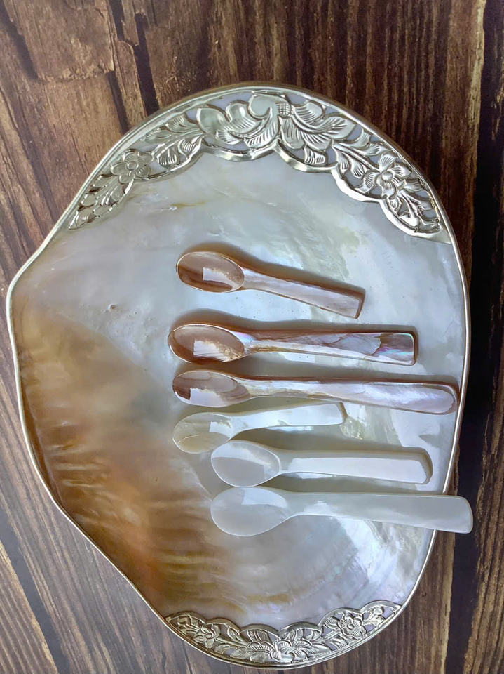 Ensemble de service pour salade en coquille de conque, cuillère de service en coquille naturelle incrustée, décoration de cuisine élégante, cadeau pour maman, cadeau de pendaison de crémaillère