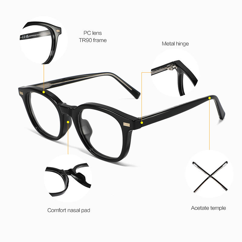 Lunettes de vue Conchen ovales à monture intégrale en acétate unisexe, verres plats anti-UV 8947