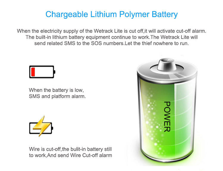 Imperméable, Détection De CRNA, Survitesse Avertissement, Roue de Chemin de Lecture, Géorepérage, Suivi en temps réel par SMS/Plate-forme/APP, Alarme de vibration, Alarme de choc, Mode d'ower-économie pendant le stationnement, Stockage de mémoire de soutien quand GSM a perdu, Facultatif: carburant isable ou électricité