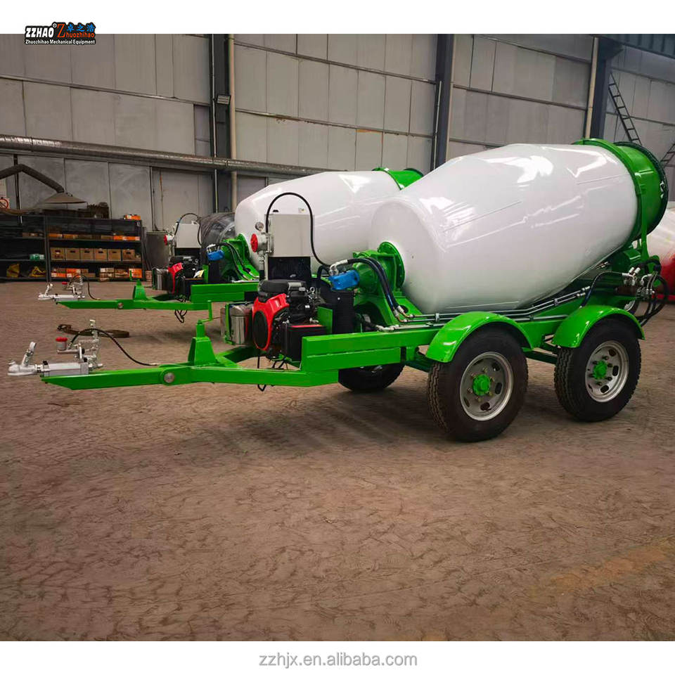 Remorque de mélangeur à béton avec moteur à essence et certification CE, remorque de citerne à béton, camion malaxeur à béton