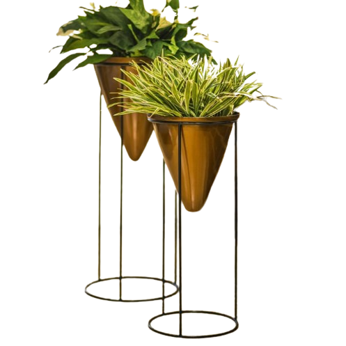 Jardinière de finition antique en forme de cône ensemble de jardinière à deux étages décor de jardin jardinières en métal de forme personnalisée