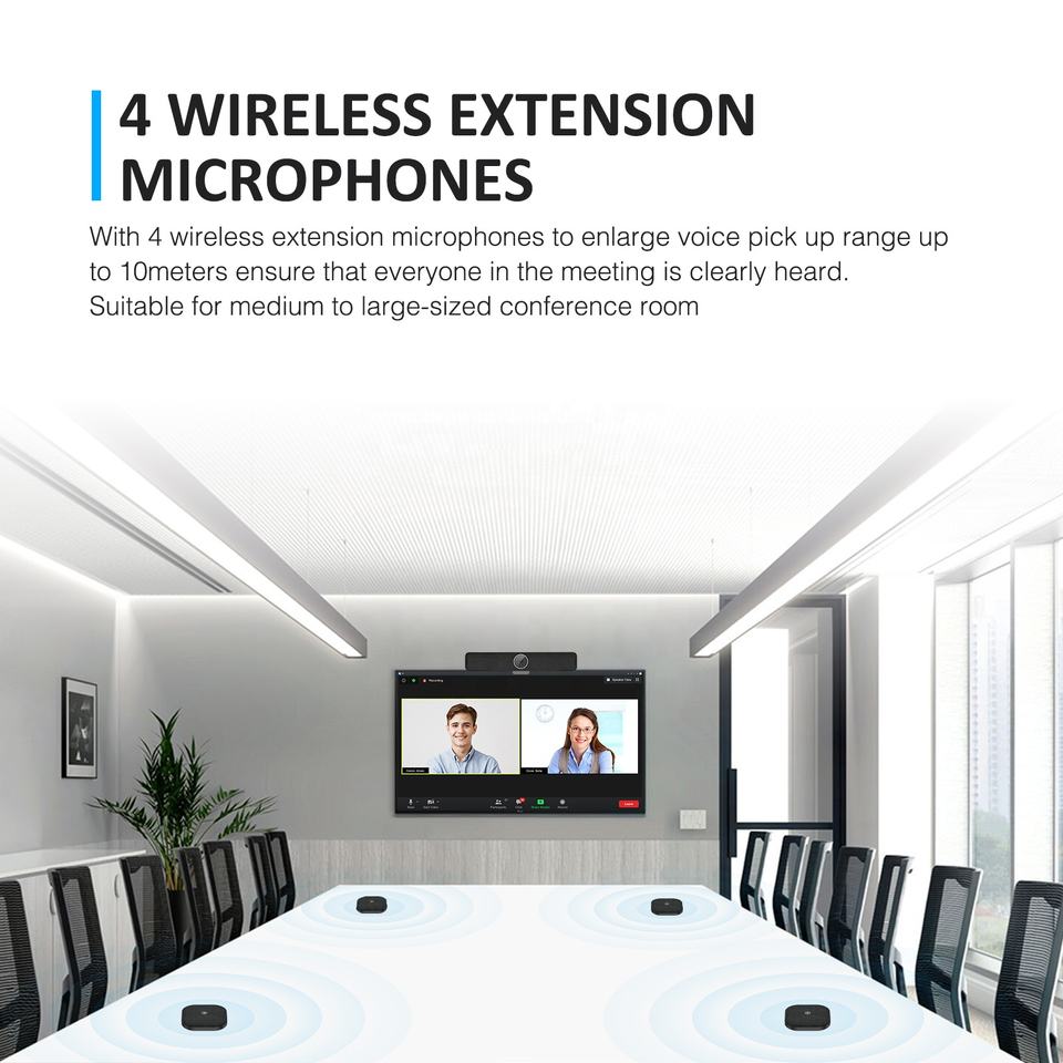 Système de caméra de salle de conférence Caméras 4K e PTZ avec 4 micros sans fil compatibles avec Zoom Skype Configuration facile pour les réunions en ligne