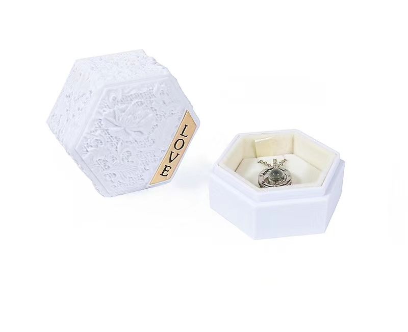 Confession proposition cadeau bague pendentif collier boîte d'emballage boîte de rangement de bijoux femmes Relief boîte à bijoux hexagonale