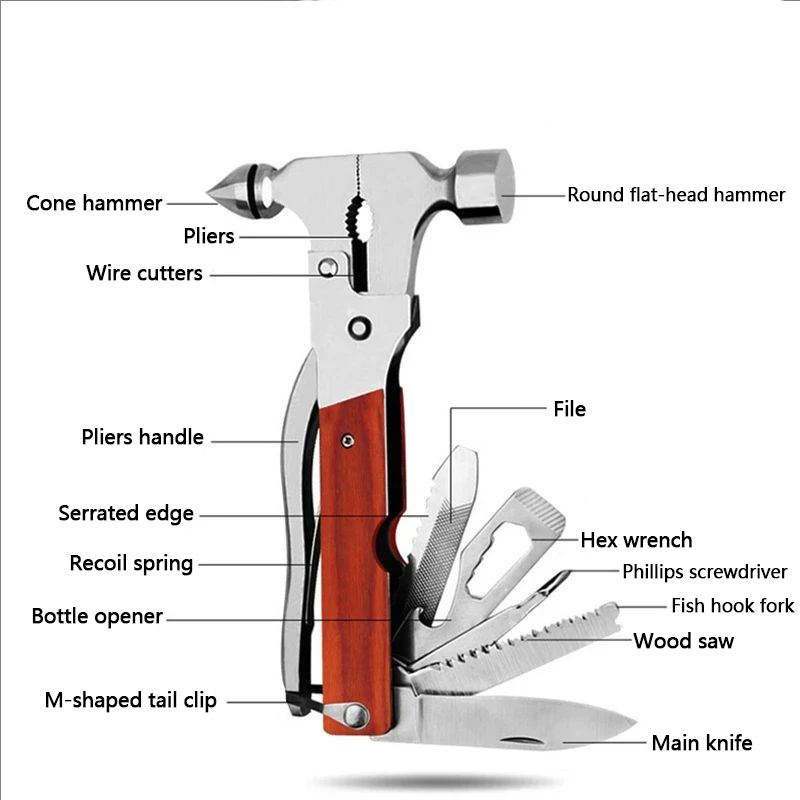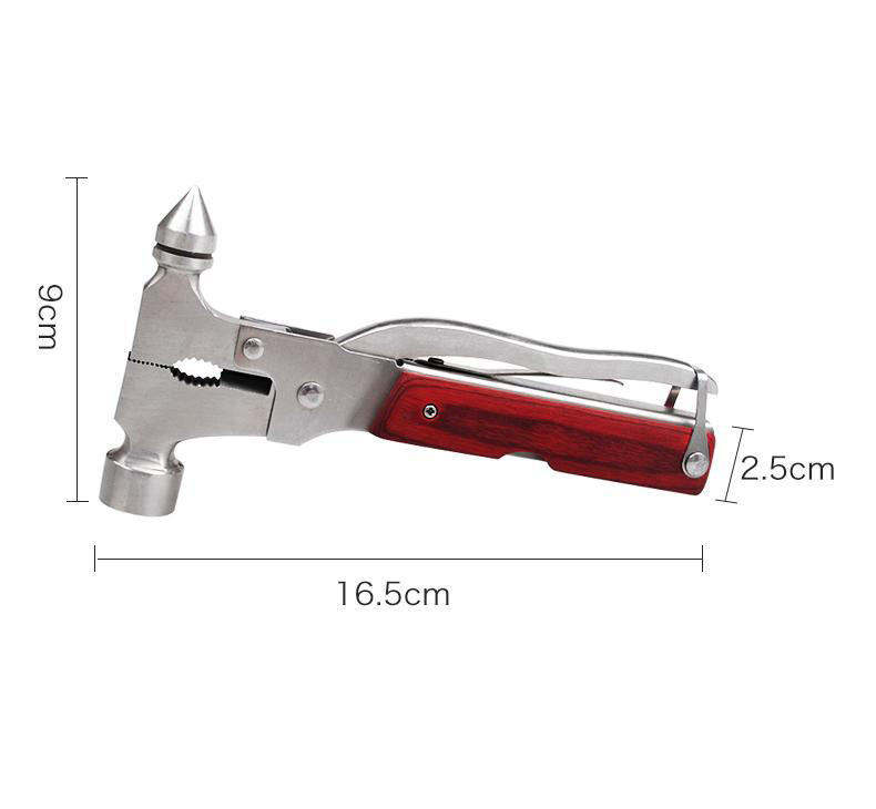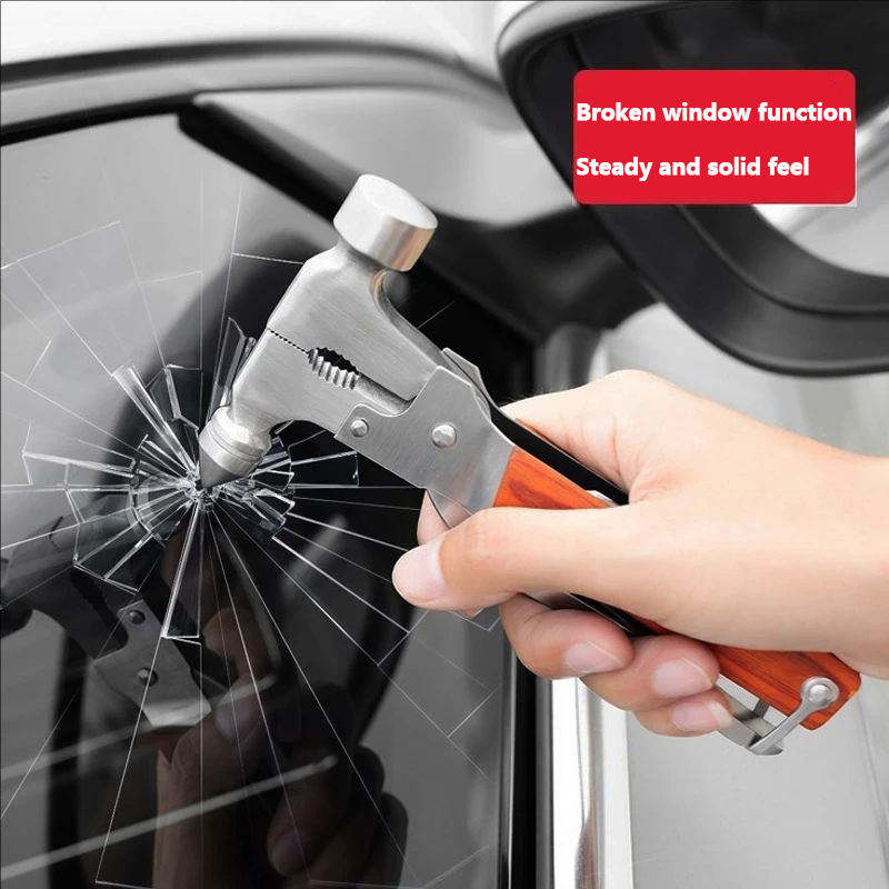 Conique Multi-Fonction Véhicule D'urgence Brise-Vitre Marteau De Sécurité 15-en-1 Outil 17cm Manche En Bois Portable Ménage