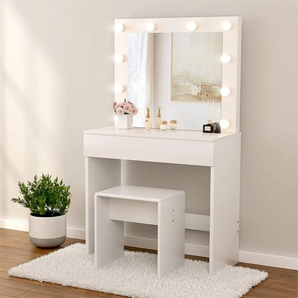 Table console pour salon, table console avec miroir LED pour table de maquillage