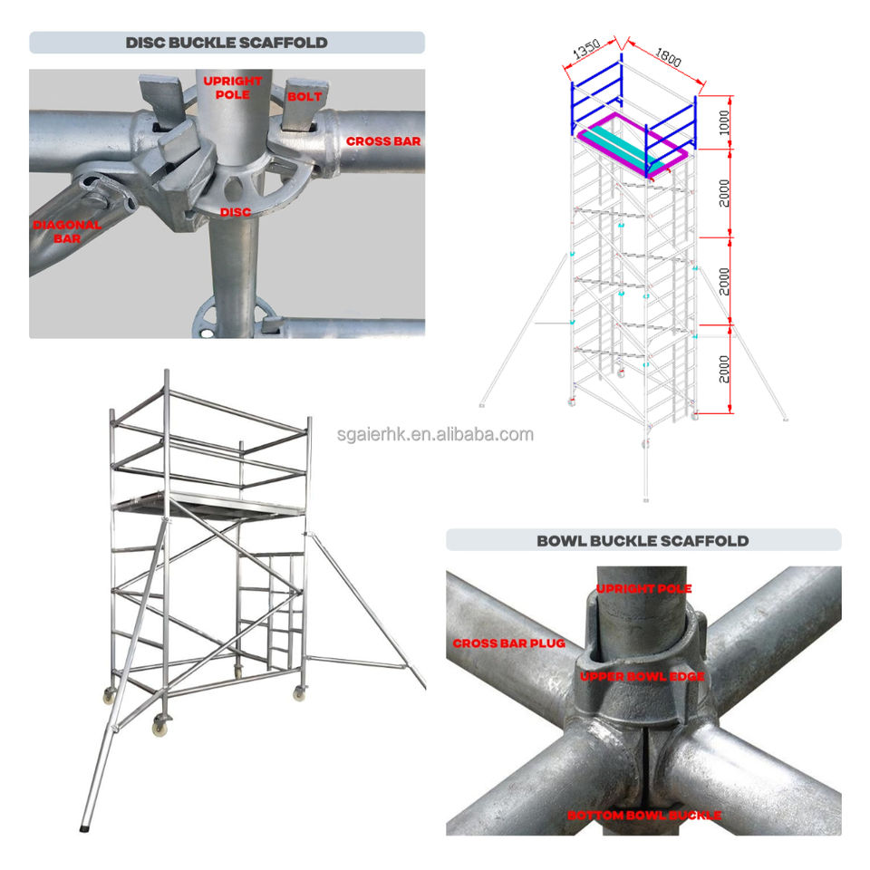 Matériaux de construction Échelle de tour d'échafaudage Coffrage roulant en aluminium Échafaudage en aluminium Cadre mobile Plate-forme de tour d'échafaudage