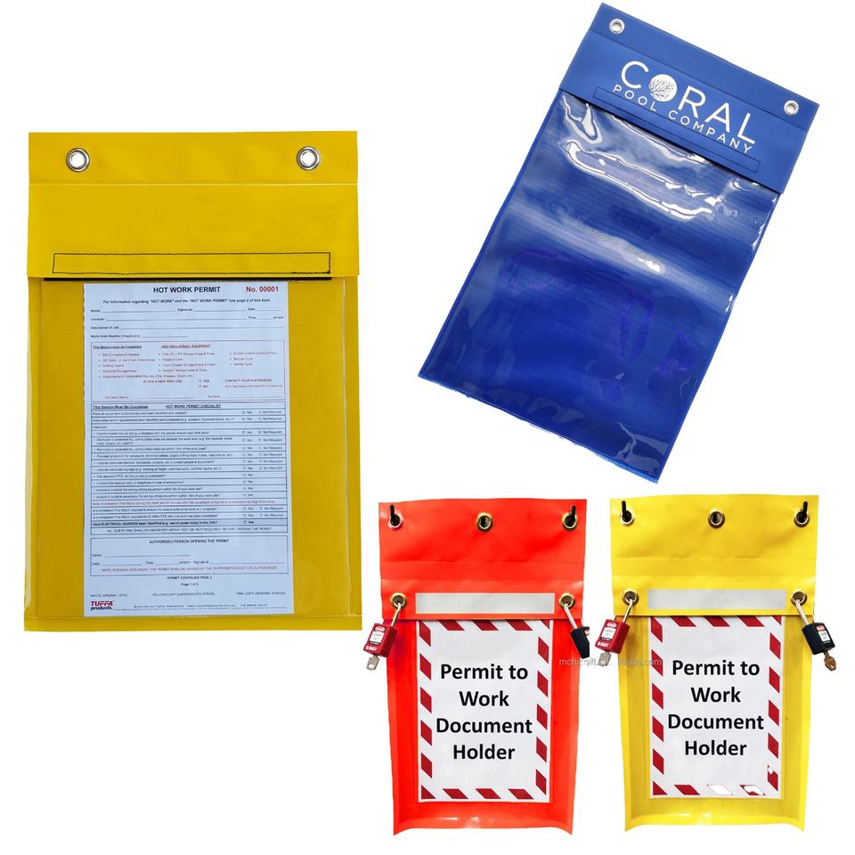 Porte-documents de chantier A4 personnalisé en PVC imperméable avec fermeture auto-agrippante pour permis et documents