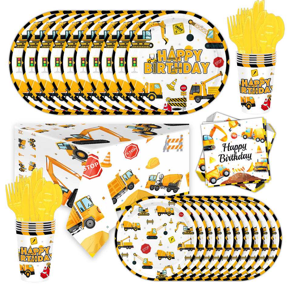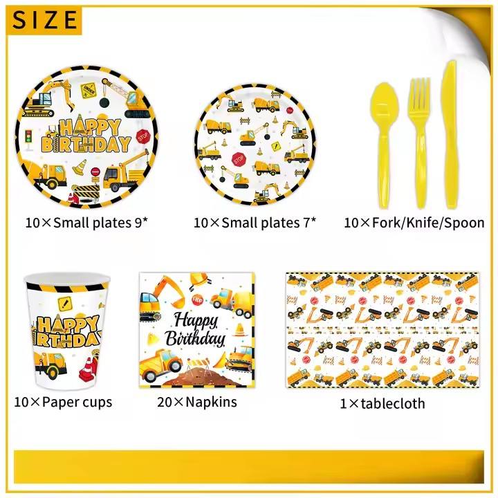 Nom du produit:Vaisselle de fête sur le thème de la construction pour 10 personnes - Assiettes jetables