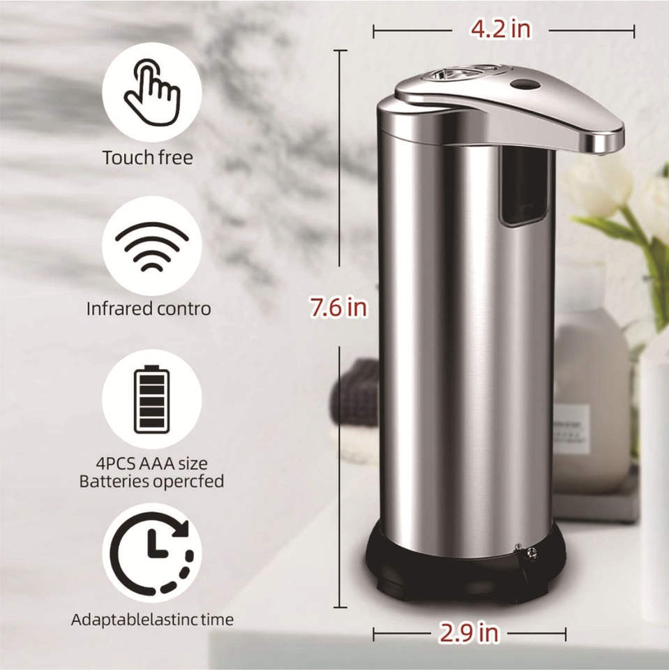 Distributeur de savon automatique sans contact en acier inoxydable, machine à savon liquide entièrement automatique, portable, sans fil, électrique