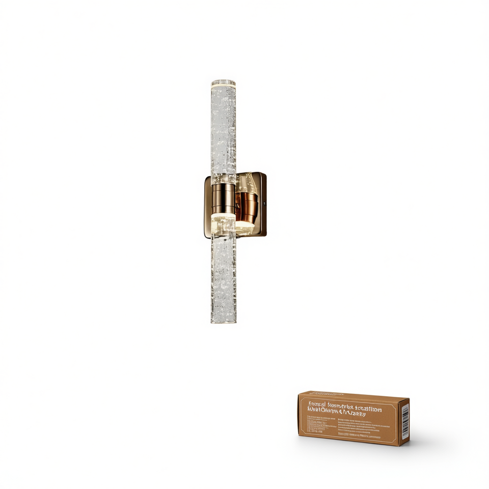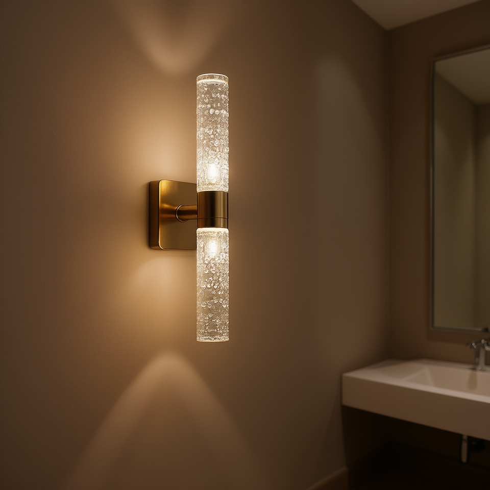 Applique murale contemporaine en fer doré, 17 pouces de hauteur, abat-jour cylindrique en cristal bulle, luminaire LED pour salle de bain et chambre à coucher