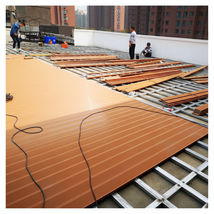 Plancher composite WPC à grain de bois 3D contemporain, trous carrés, antidérapant, écologique, résistant aux intempéries, épaisseur 18 mm, extérieur