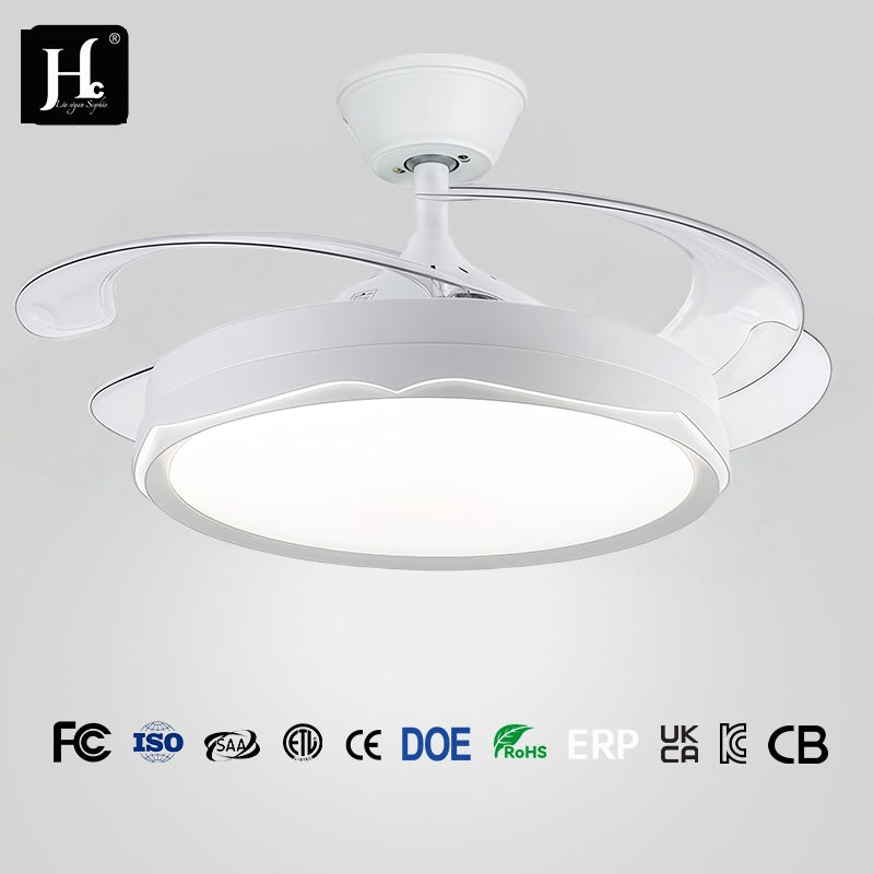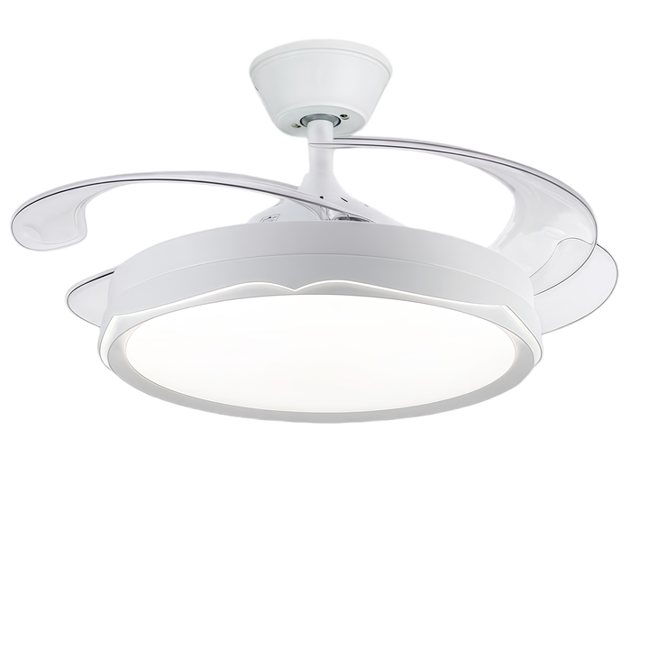Ventilateur de plafond LED moderne blanc contemporain de 42 pouces avec lumière, télécommande, 3 vitesses, pales rétractables pour chambre à coucher