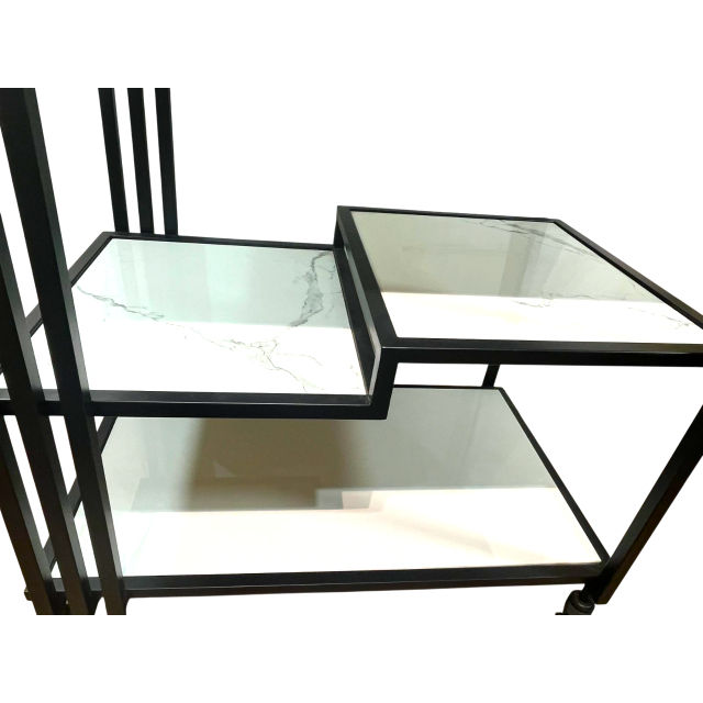 Chariot de service contemporain asymétrique en marbre et métal, mélange saisissant de design moderne, prix de gros