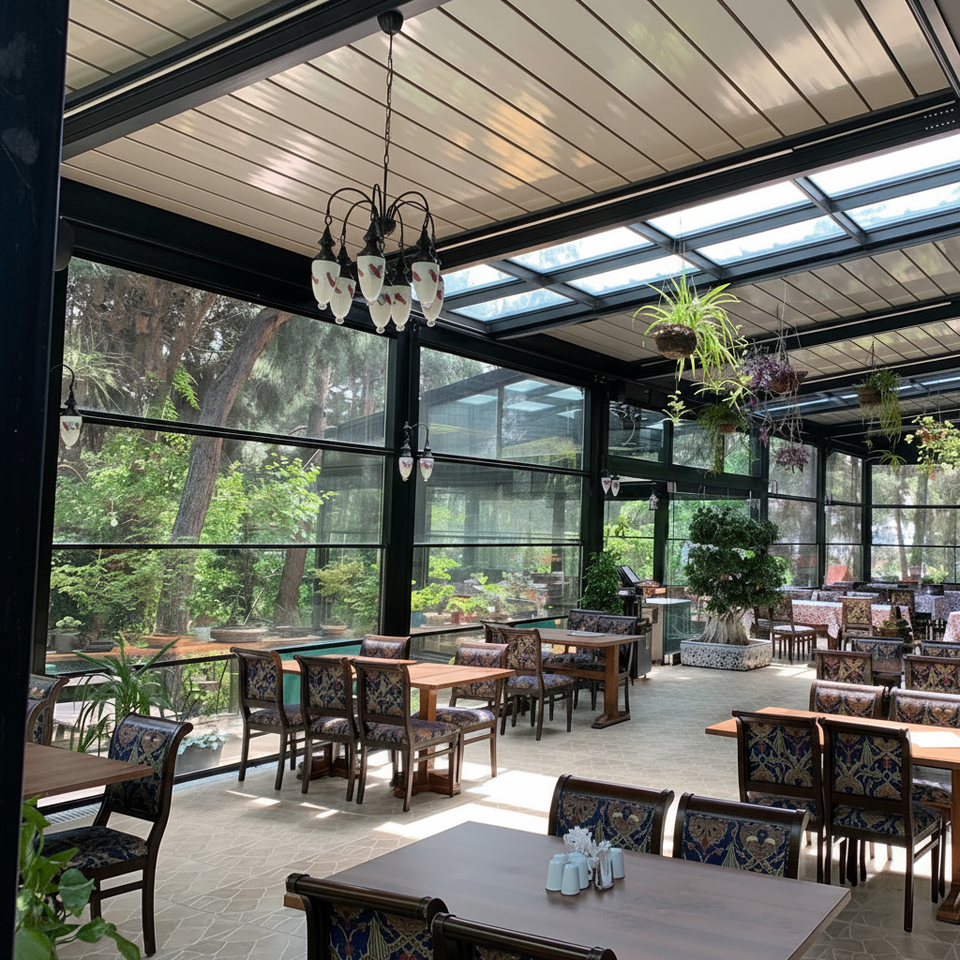 Pergola bioclimatique contemporaine avec toit pare-soleil pour jardin ou balcon