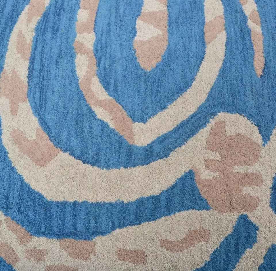 Tapis moderne en laine touffeté à la main de conception abstraite bleue contemporaine taille personnalisée de qualité supérieure disponible en coton à poils en peluche