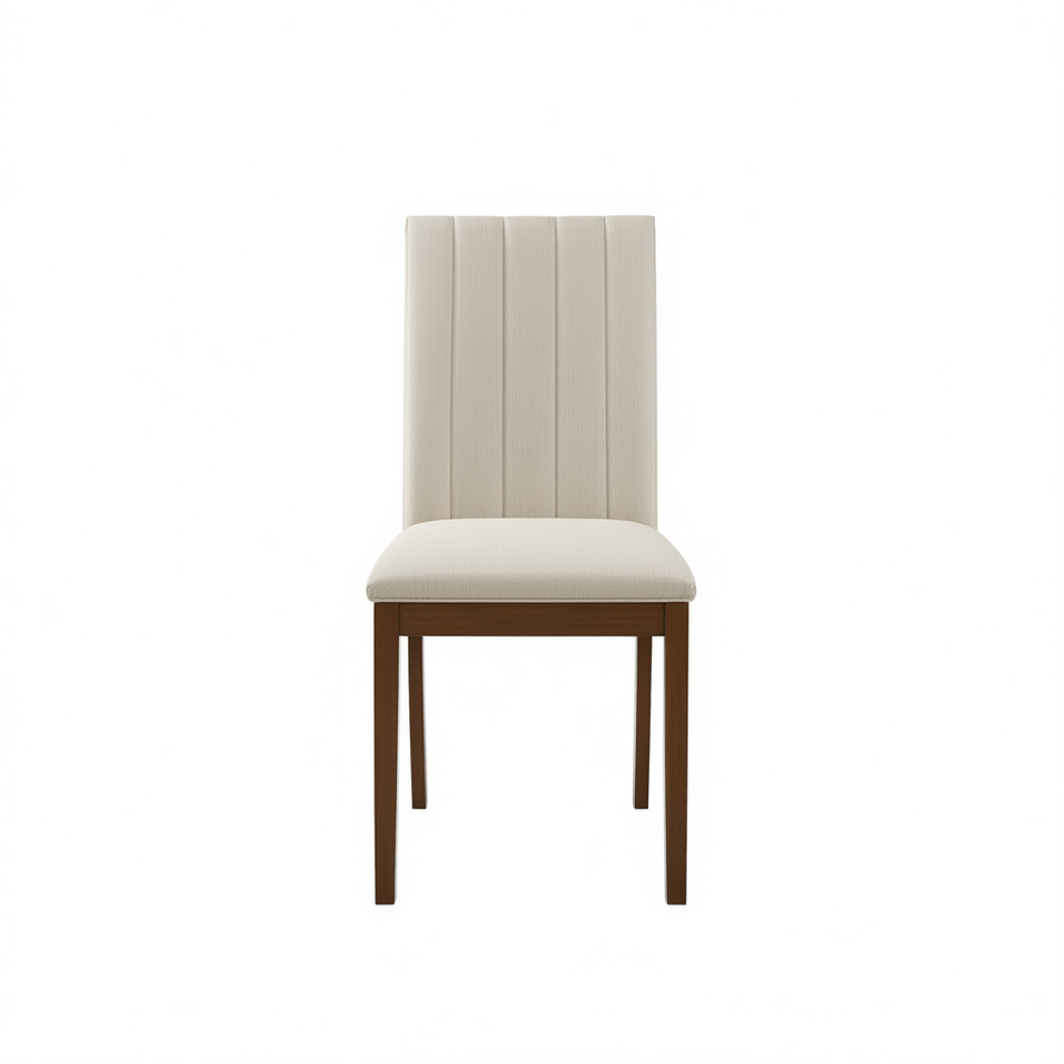 Chaise de salle à manger contemporaine rembourrée en tissu avec pieds en bois, assise confortable, dossier moderne, mobilier de maison