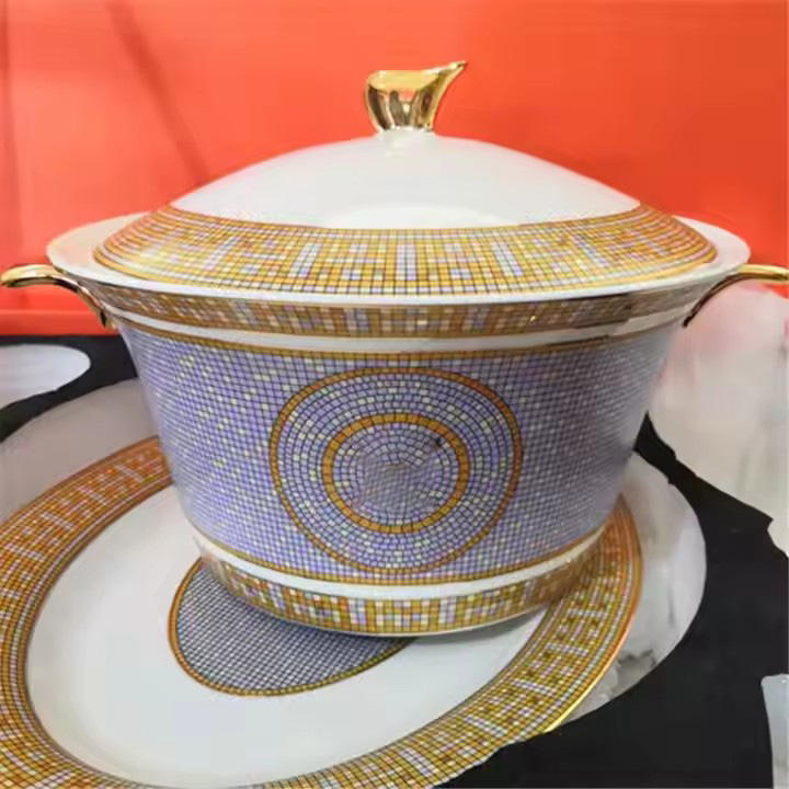 Nom du produit:Ensemble de vaisselle 58 pièces en porcelaine fine dorée effet mosaïque