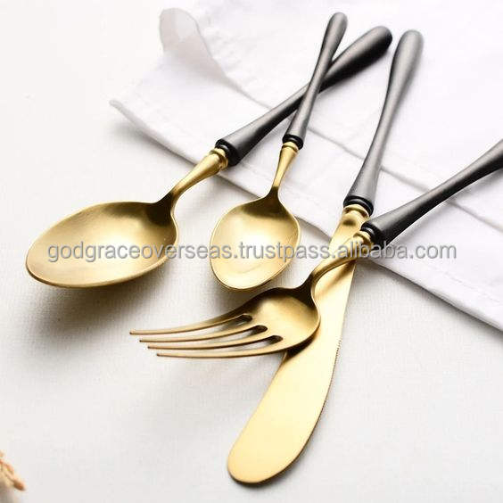 Ensemble de couverts en acier inoxydable chic contemporain polissage miroir Chic cuillère fourchette couteau ensembles de couverts pour les fêtes métal élégant
