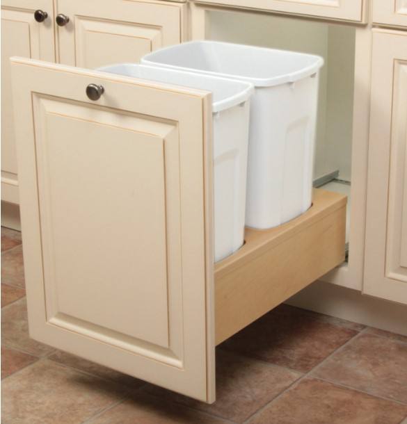 Support coulissant en bois au design contemporain, facile à installer, pour poubelle, pour armoires de cuisine