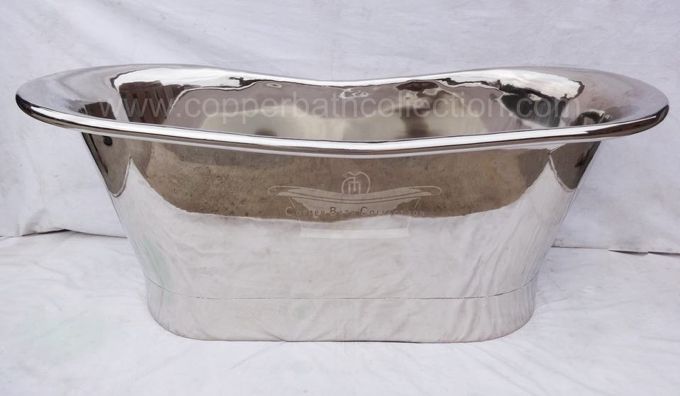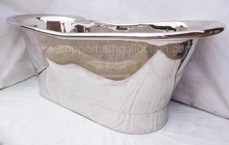 Baignoire contemporaine de luxe en nickel brillant avec couvercle en cuivre Design bateau pour une expérience de salle de bain pour adultes de qualité supérieure