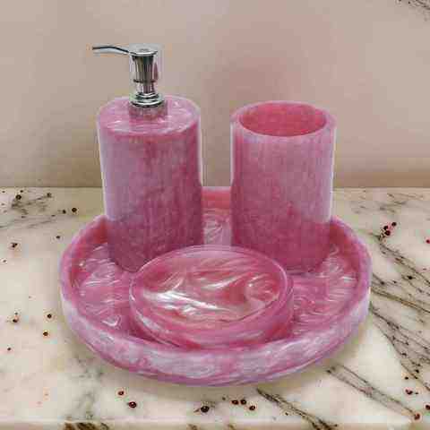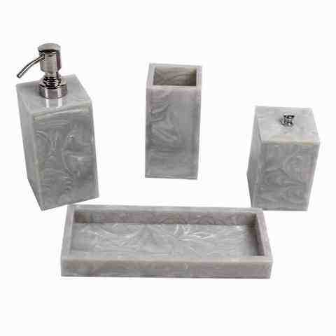 Ensemble de salle de bain design contemporain, facile à nettoyer, en polyrésine, rectangulaire, quatre pièces, finition blanche, pour la décoration de salle de bain moderne