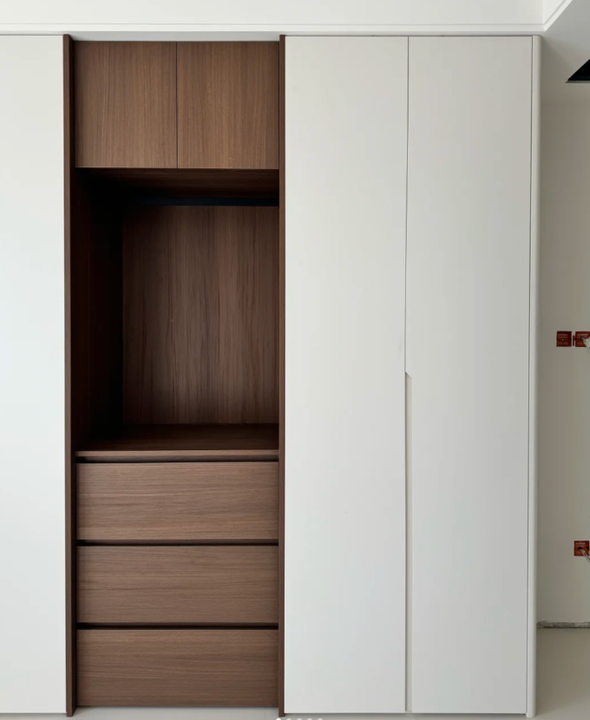 Garde-robe contemporaine autoportante en bois mélaminé portes à charnières caractéristiques de pliage propres pour chambre atelier salle à manger utilisation en MDF