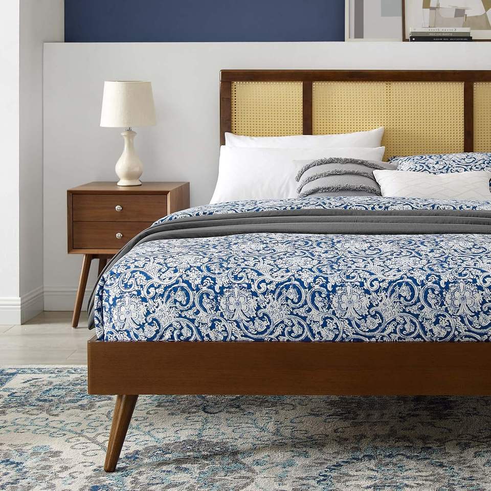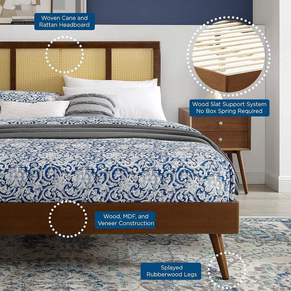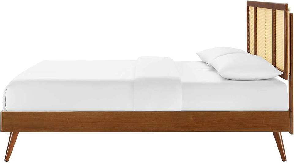 Contemporary Full-Size Brown Walnut Wood Platform Bed Frame Solid Wood Modern Design for Bedroom Master or Guest Suite