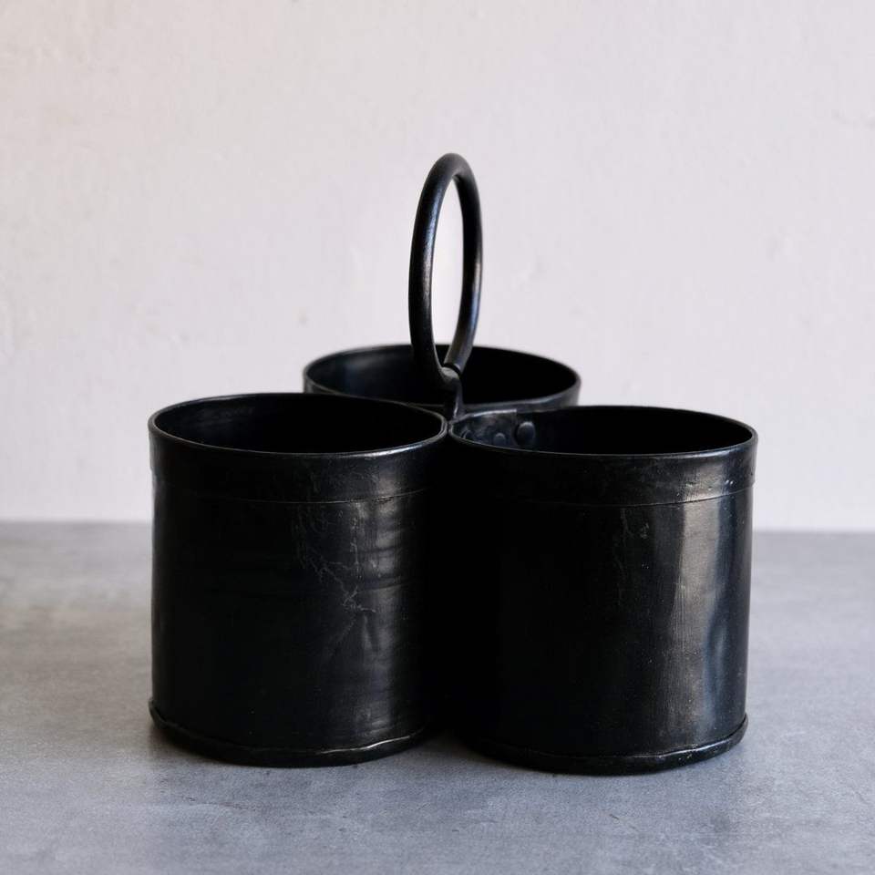 Porte-couverts contemporain en acier galvanisé pour une cuisine épurée, offrant un rangement fonctionnel et décoratif