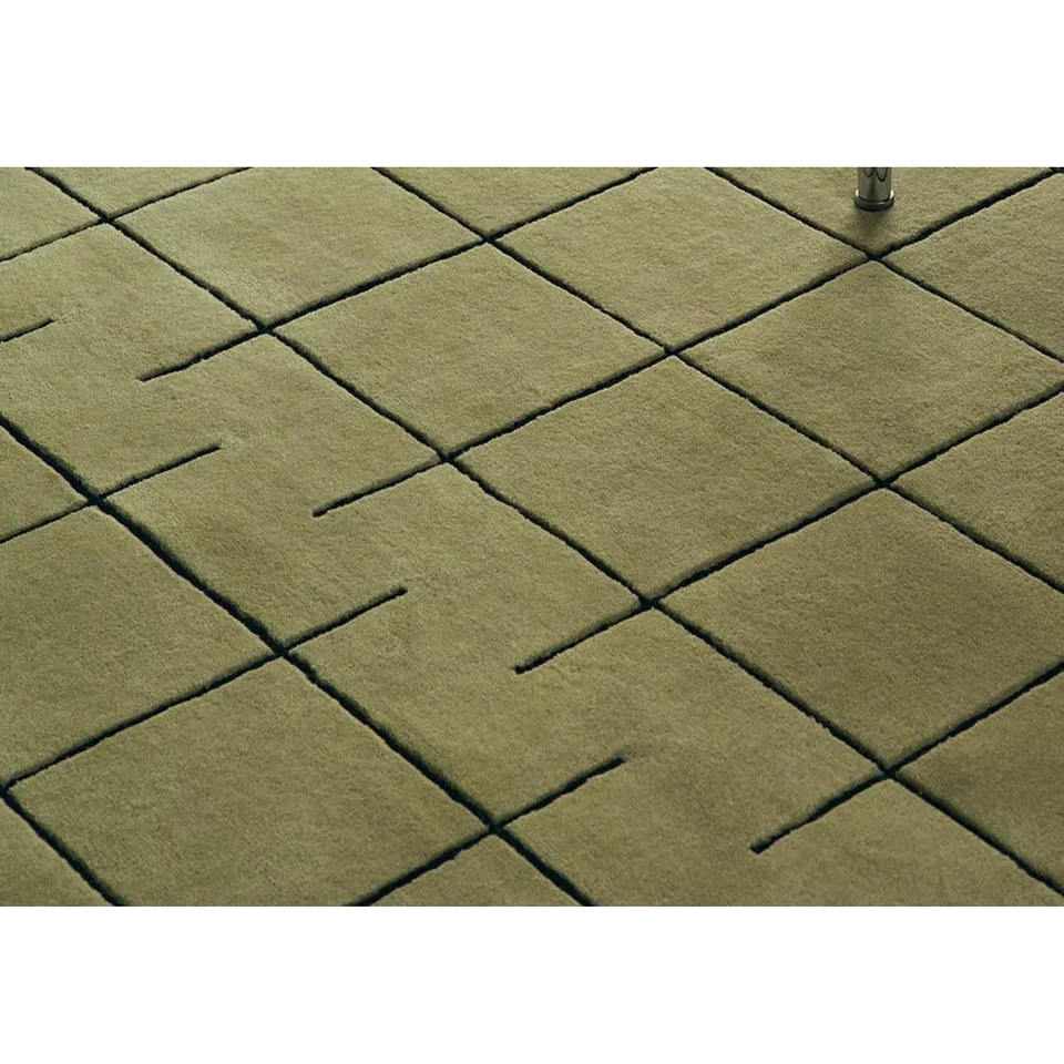 Tapis en laine géométrique contemporain, tufté à la main, tapis vert sculpté, tapis faits à la main, exportateur