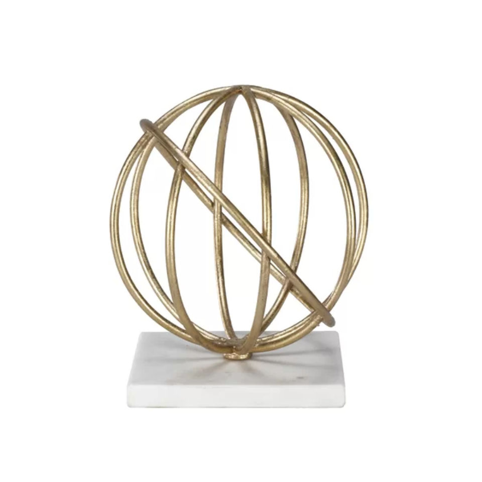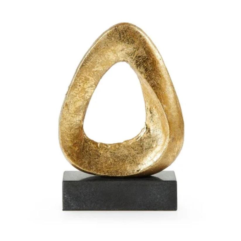 Sculpture abstraite contemporaine en or sur base en marbre noir, ornement décoratif moderne pour la maison, pour table, étagère ou bureau