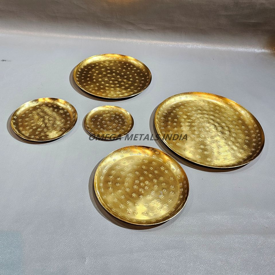 Contemporary Gold Round Trays 5 Pcs with Polished Finish Perfect for Hosting Gatherings and Elevating Your Dining Experience