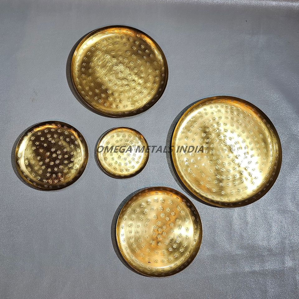 Plateaux ronds dorés contemporains 5 pièces avec finition polie parfaits pour accueillir des rassemblements et rehausser votre expérience culinaire
