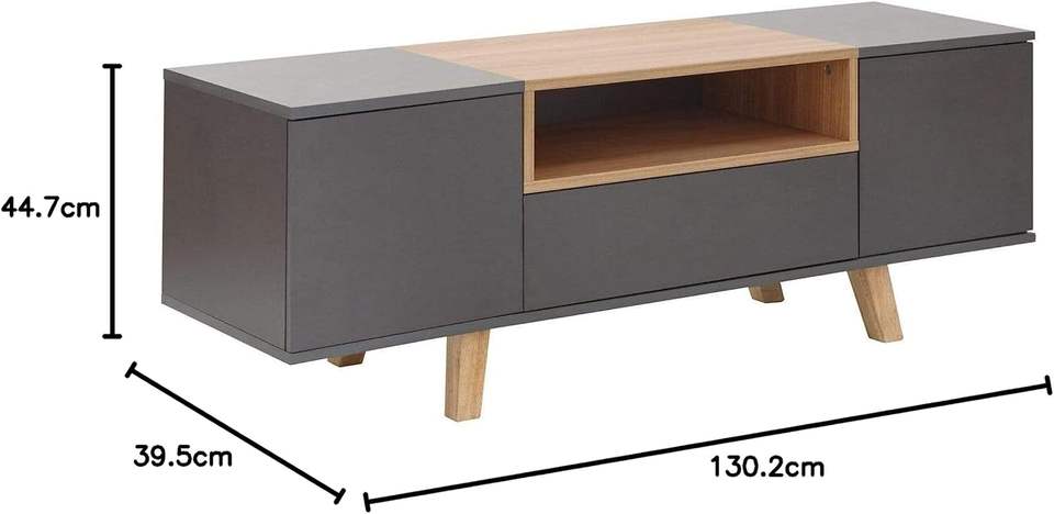 Console TV grise contemporaine 55 pouces meuble TV avec 2 placards latéraux et 1 étagère pour le salon