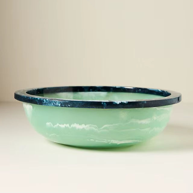Bol à fruits en résine écologique fait main contemporain, bol à salade moderne de luxe, plat de service décoratif, passe au lave-vaisselle, personnalisable pour