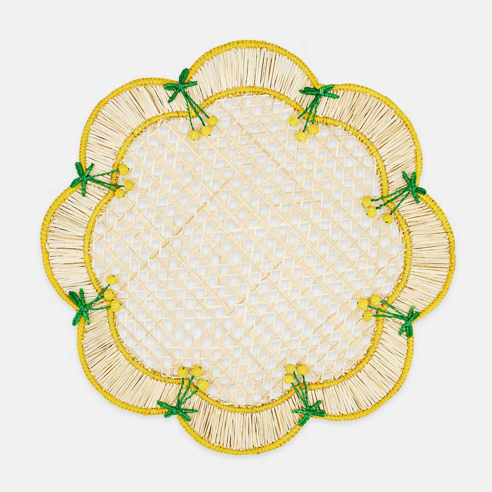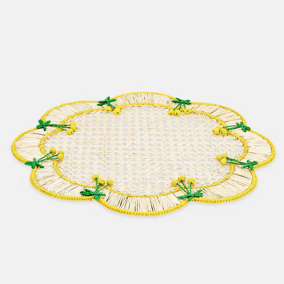Sous-plat contemporain fait main en rotin naturel, motif vagues, assiette de présentation festonnée en rotin pour table à manger, provenant d'usine vietnamienne