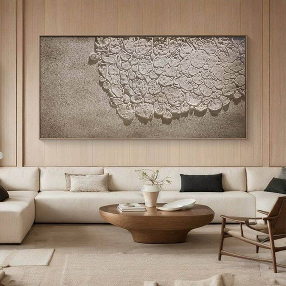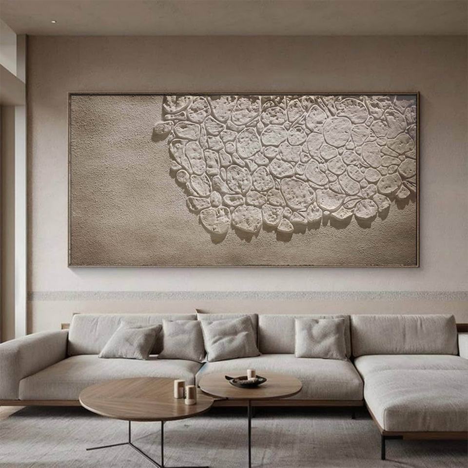 Art mural abstrait texturé de grande taille en toile acrylique Wabi-Sabi fait main contemporain, décoration intérieure de luxe pour salon