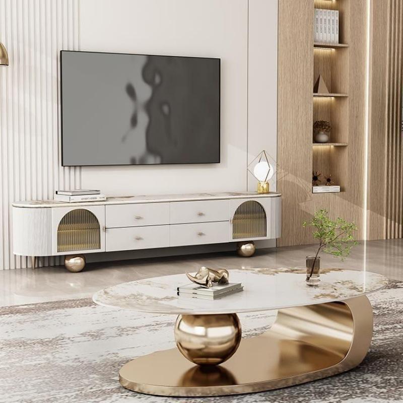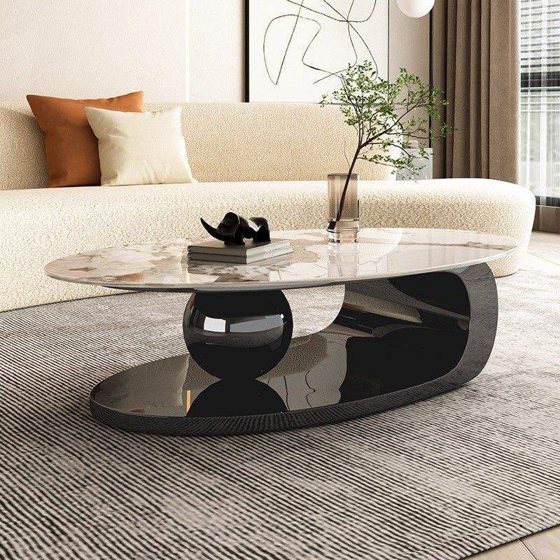 Contemporary Home Oval Gold Stone Top Center Table Metal Living Room Furniture Modern Luxury Marble Slate Coffee Table