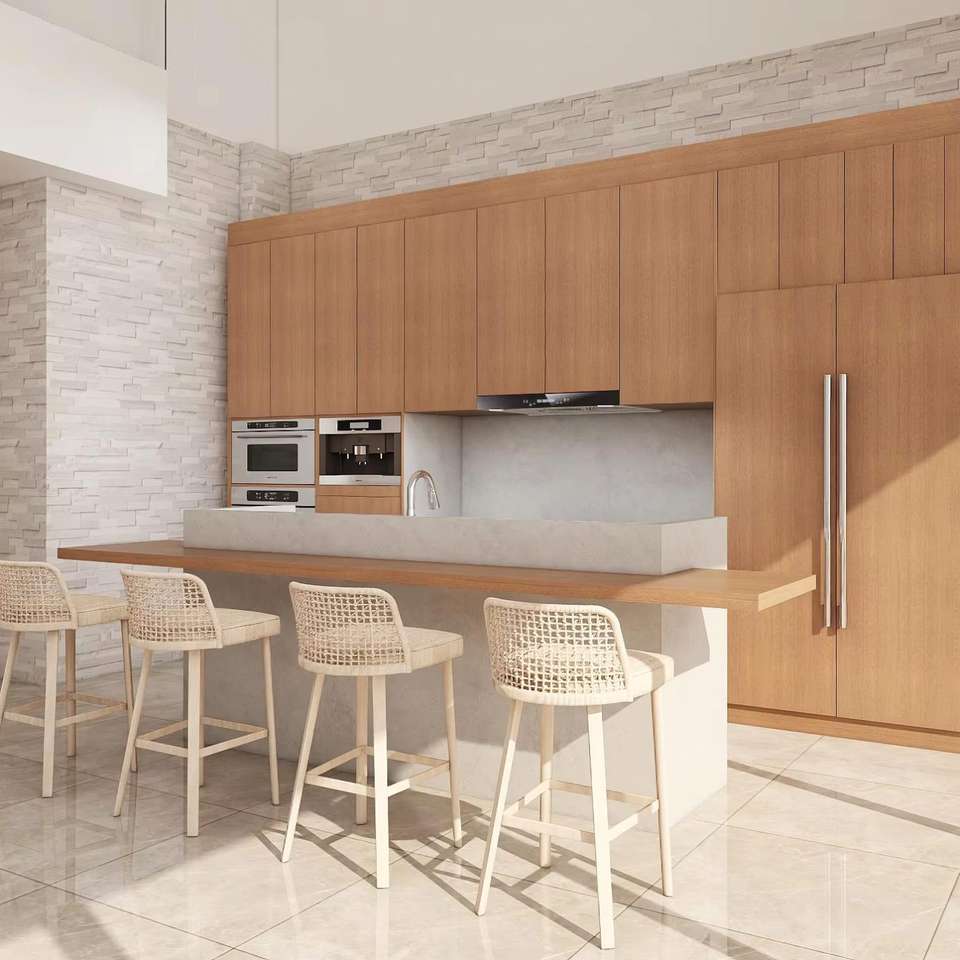 Contemporary Kitchen Cabinets Wood Tone Plywood Flat Panel Door Eco-Friendly Design