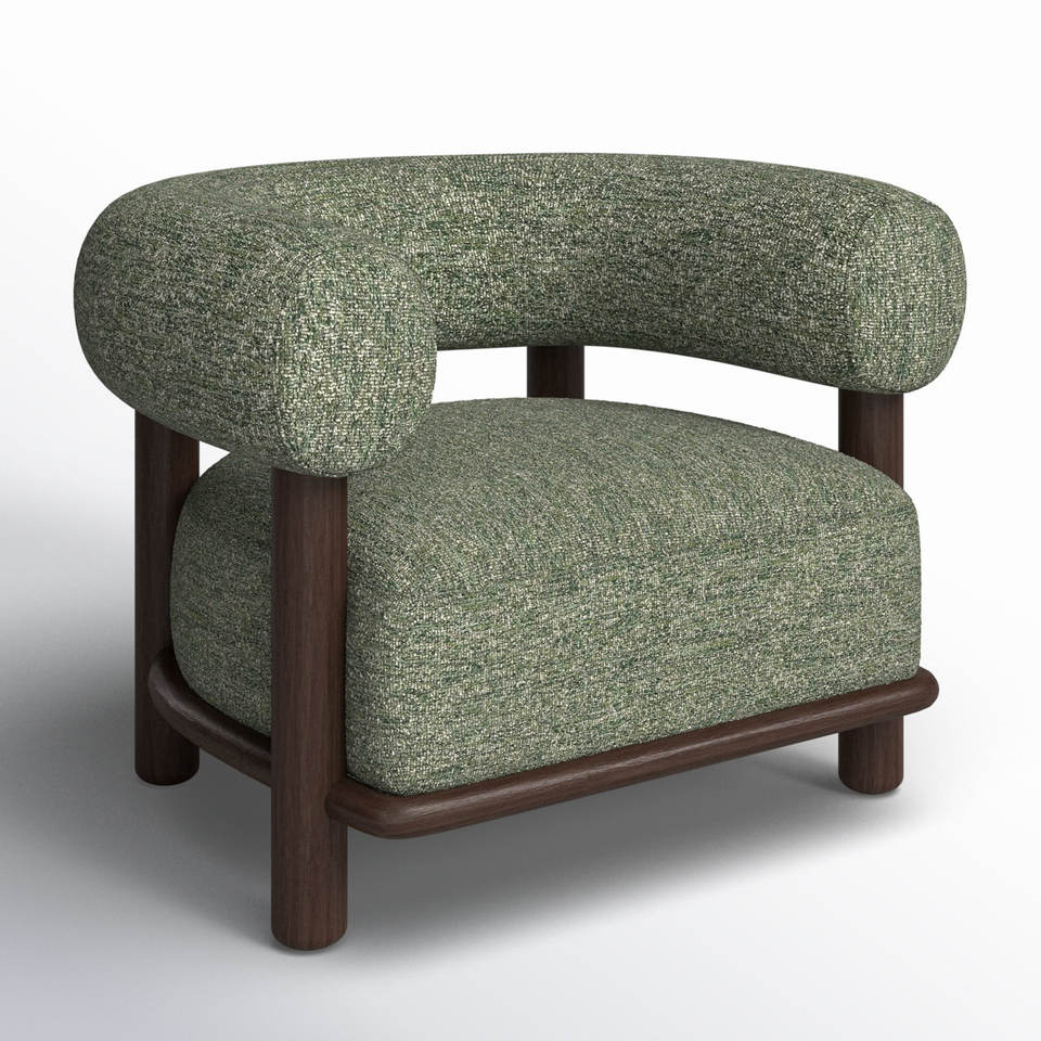 Chaise longue contemporaine d'appoint avec dos arrondi, tissu vert texturé et cadre en bois foncé robuste, confort élégant