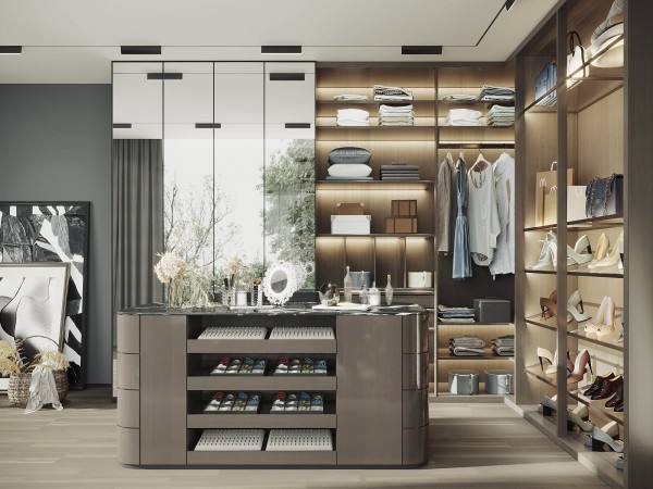 Armoires en acrylique sur mesure de luxe contemporaines, rangement de chambre à coucher moderne à finition brillante, MDF, personnalisation complète de la maison, dressing