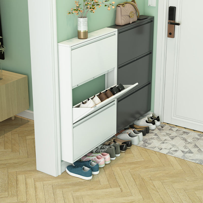 Armoire de rangement de chaussures contemporaine en métal étroite étagère à chaussures murale cachée organisateur pour l'entrée et le salon sécurité et durable