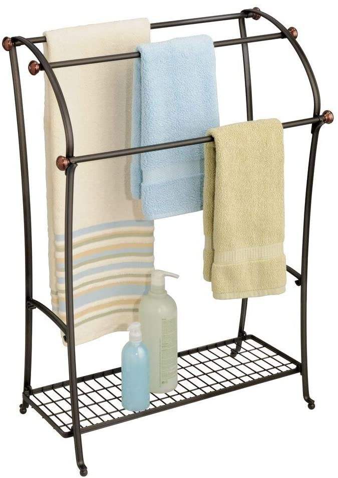 Support à serviettes en métal contemporain avec structure en fer durable, accessoire de salle de bain idéal pour le séchage et le rangement des serviettes