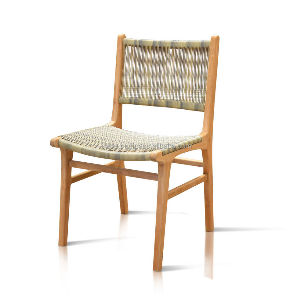 Chaise de salle à manger moderne contemporaine de haute qualité en bois de teck massif sangle de cordon synthétique finition naturelle élégante maison convertible