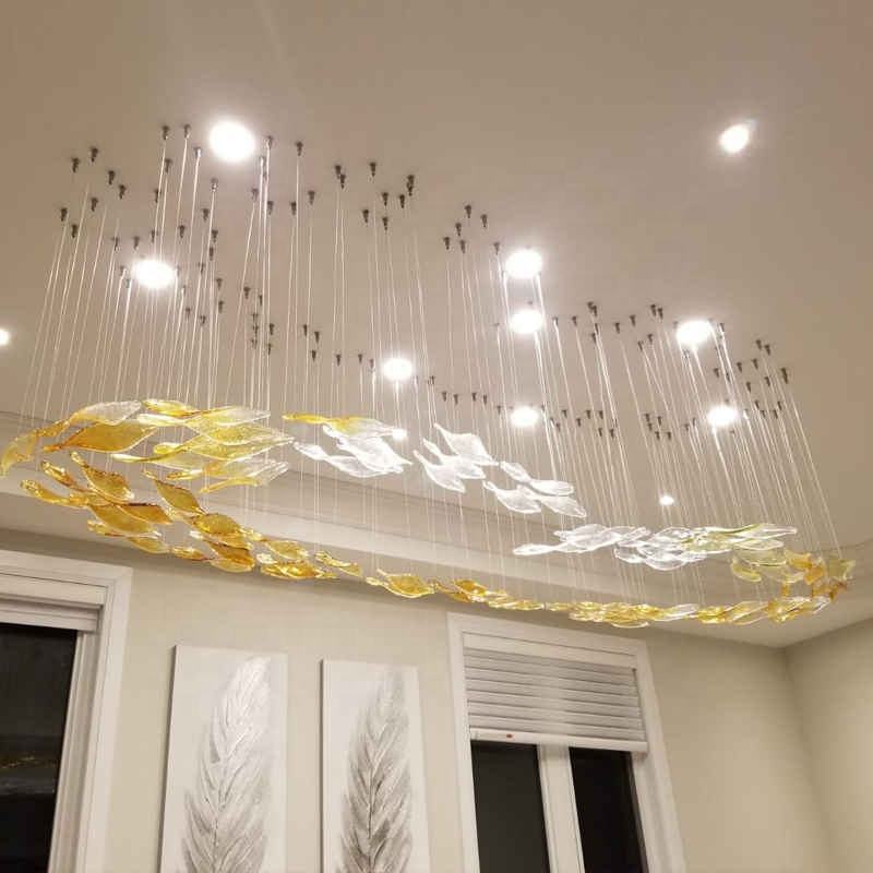 Lustres en verre LED à feuilles d'érable suspendus au plafond, grand modèle, luxe moderne contemporain pour hôtel