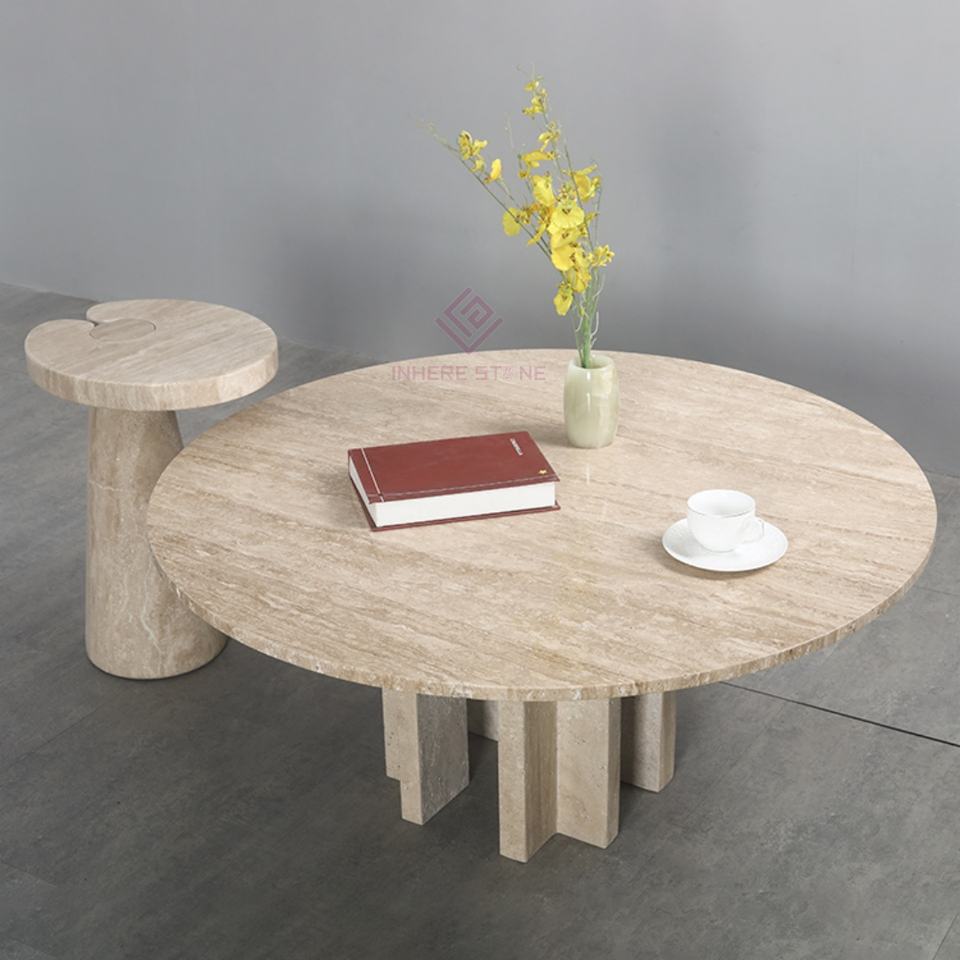 Nom du produit:Ensemble table basse et table d'appoint en travertin nordique contemporain