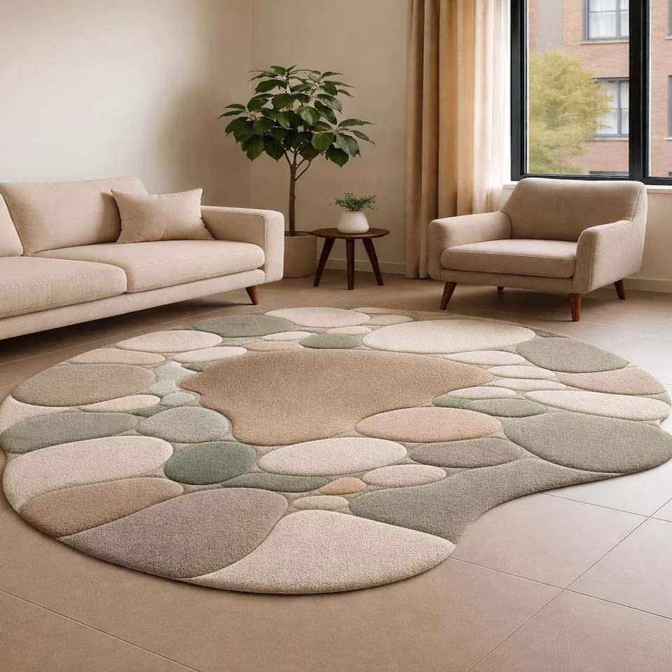 Tapis contemporain à motif galets, tapis tufté à la main en laine de Nouvelle-Zélande, tapis de luxe moderne pour salon, décoration intérieure