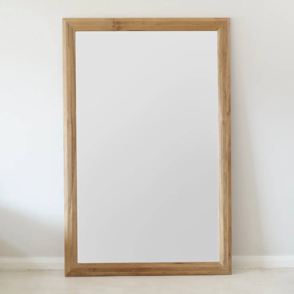 Miroir mural contemporain rectangulaire en bois verre biseauté miroir debout longueur durable en bois de teck ferme moderne