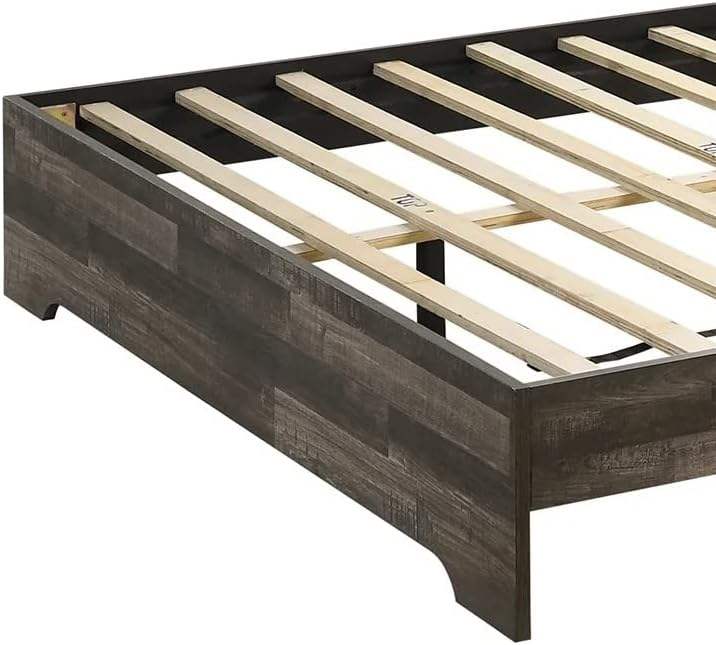 Mobilier de chambre à coucher contemporain finition brun rustique en bois massif 1pc lit plateforme pleine grandeur design traditionnel