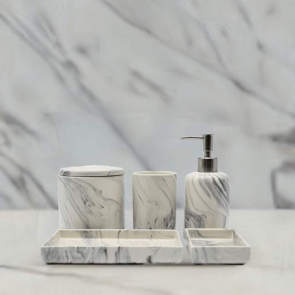 Ensemble de salle de bain en pierre contemporain, conçu pour s'harmoniser avec les équipements modernes, le décor minimaliste et les lignes épurées